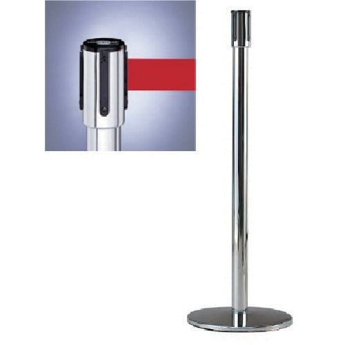 ベルト色:赤 | ポール色:銀 | ポール寸法(mm):Ф50 | ベース寸法(mm):Ф343×H960 | 材質・仕上げ:スチールクロームメッキミ…