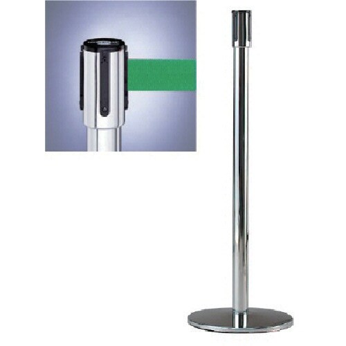ベルト色:緑 | ポール色:銀 | ポール寸法(mm):Ф50 | ベース寸法(mm):Ф343×H960 | 材質・仕上げ:スチールクロームメッキミ…
