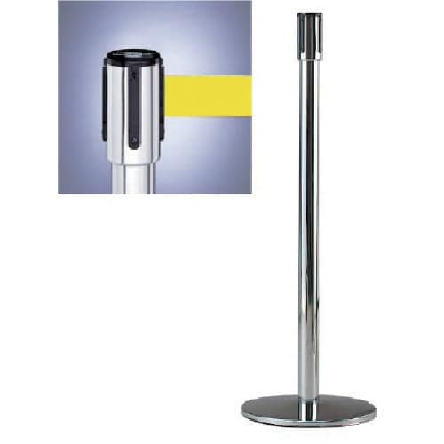 ベルト色:黄 | ポール色:銀 | ポール寸法(mm):Ф50 | ベース寸法(mm):Ф343×H960 | 材質・仕上げ:スチールクロームメッキミ…