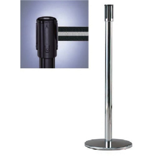 ベルト色:黒白ストライプ | ポール色:黒 | ポール寸法(mm):Ф50 | ベース寸法(mm):Ф343×H960 | 材質・仕上げ:スチールブラ…