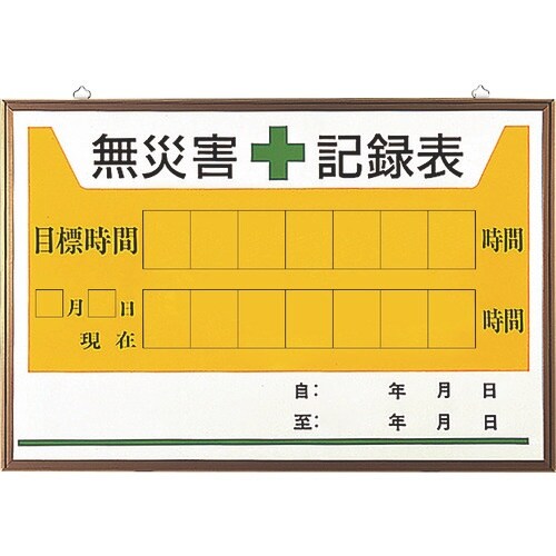 無災害継続時間を表示できるゴムマグネット貼付タイプの記録表です。無災害の確認と記録更新への意欲が、一人一人の安全意識を高めます。工事現場、工場、一般事業所等での無災害活動に最適です。 |