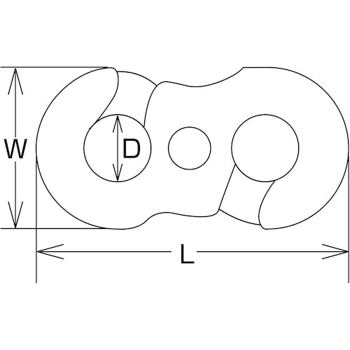 ハンマーでたたいて、外れなくすることもできます。チェーン・ワイヤー・ロープ等の連結金具として、また端末の金具のジョイントに。 |