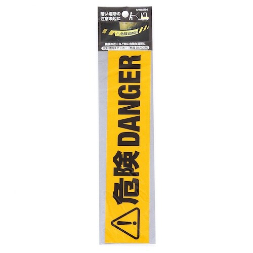 懐中電灯やヘッドライトを反射して光るシートに注意喚起のメッセージがつきました。 |