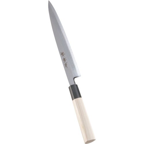 ※庖丁の表示サイズは、マチ付庖丁は刃先からマチまで、 マチなし庖丁は刃渡り寸法となっております。 堺 孝行作 イノックス 和包丁サビに強い特殊鋼を使いながらも、価格を低くおさえた普及品の和庖丁です。 |