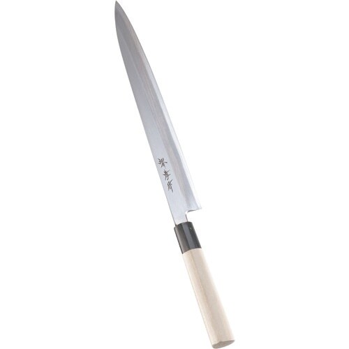 ※庖丁の表示サイズは、マチ付庖丁は刃先からマチまで、 マチなし庖丁は刃渡り寸法となっております。 堺 孝行作 イノックス 和包丁サビに強い特殊鋼を使いながらも、価格を低くおさえた普及品の和庖丁です。 |