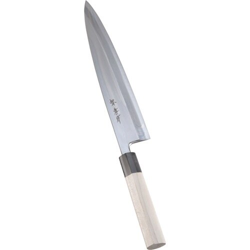 ※庖丁の表示サイズは、マチ付庖丁は刃先からマチまで、 マチなし庖丁は刃渡り寸法となっております。 堺 孝行作 イノックス 和包丁サビに強い特殊鋼を使いながらも、価格を低くおさえた普及品の和庖丁です。 |
