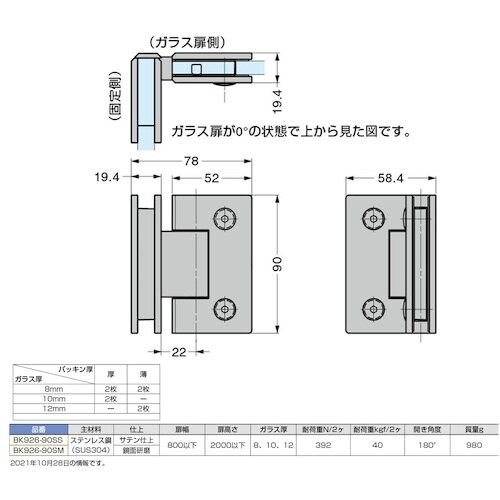 SUGATSUNE (170021479)BK926−90SM/ステンレス鋼製ガラスドア用自由蝶番※在庫限り BK92690SM 1個