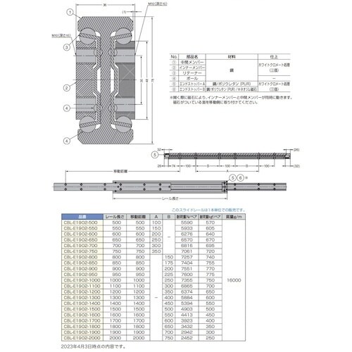 SUGATSUNE (190114207)CBL−E1902−1900スライドレール CBLE19021900 1本