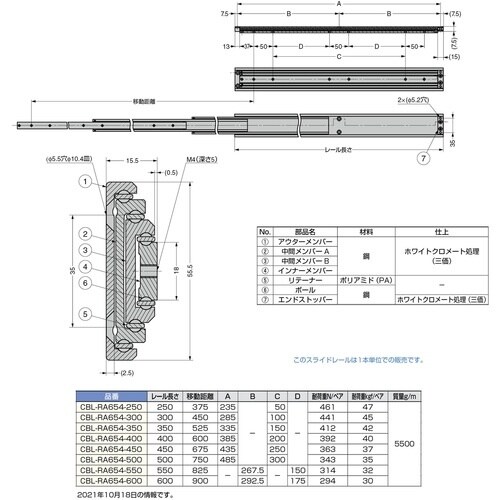 スガツネ工業 SUGATSUNE (190114247)CBL−RA654−600スライドレール CBLRA654600 1本 A01K-1117