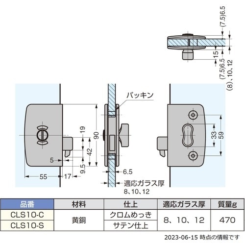 ガラス引戸用のカマ錠です。表示器の色は視認性がよく、施錠・解錠状態がはっきりと分かります。ご使用のガラスの端面を保護するために、別売品のガラスエッジプロテクターGP型をご使用ください。 |