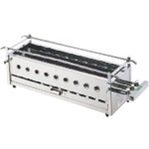 | 注意事項 | ※その他の都市ガス商品を御注文の際は、ガス種を御指定ください。本器はSUS430ステンレススチールを使用しておりますが、酸や 塩分をつけたまま長時間放置しておきますと腐食することがあり ますので、使用後は必ずふき取っておいてください。閉めきった部屋で使用されるときには、窓を開けたり換気扇を廻し たりして換気に御注意ください。風の吹き返しによるバーナー消火に御注意ください。汁受皿(引出し)には、常に半分以上水を入れてご使用ください。 |