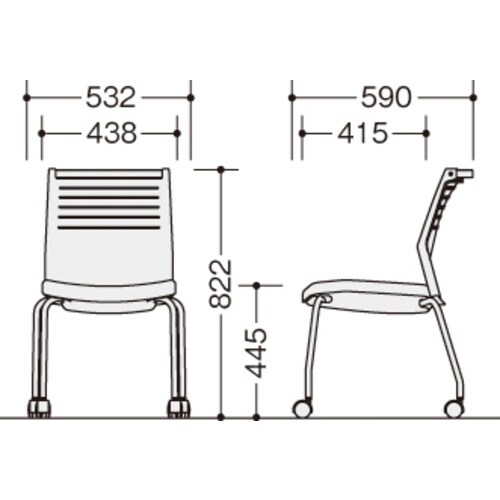座幅(mm):438 | 座奥行(mm):415 | 座面高さ(mm):445 | 幅(mm):532 | 奥行(mm):590 | 高さ(mm):8…