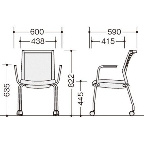 座幅(mm):438 | 座奥行(mm):415 | 座面高さ(mm):445 | 幅(mm):600 | 奥行(mm):590 | 高さ(mm):8…
