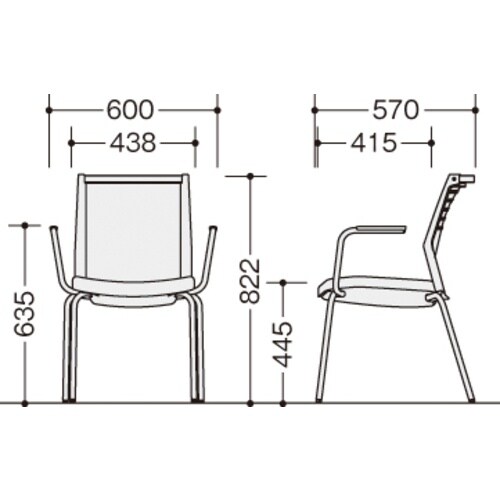 座幅(mm):438 | 座奥行(mm):415 | 座面高さ(mm):445 | 幅(mm):600 | 奥行(mm):570 | 高さ(mm):8…