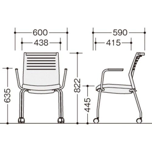 座幅(mm):438 | 座奥行(mm):415 | 座面高さ(mm):445 | 幅(mm):600 | 奥行(mm):590 | 高さ(mm):8…