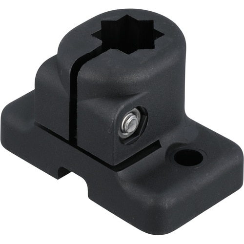 当社シャフトと組み合わせが可能な取付ベースです。樹脂成型品のため軽量で安価です。機械上面などへ取付可能です。 |