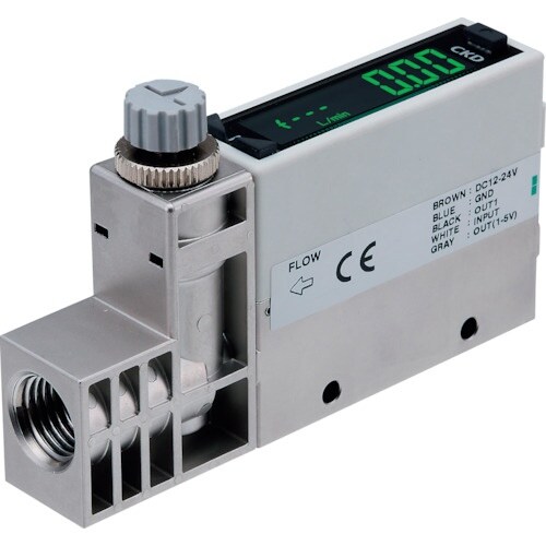 1台で、空気・窒素・アルゴン・炭酸ガス・混合ガス(混合比Ar:CO2(8:2))の5種類のガスに対応可能な流量センサです。 |