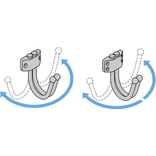 フック部は180°回転し、フリクション(抵抗機能)が振動による首振りを防止します。フックの先端が球状なので、安心してご使用いただけます。 |