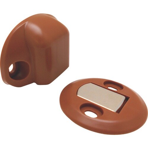 マグネット式の収納扉用キャッチャーです。玄関、室内等の大型ドアに適しておりませんのでご注意ください。扉が開いている時は戸当りがジャマにならないフラットタイプです。ドアは設置位置でピタッと止まります。 |