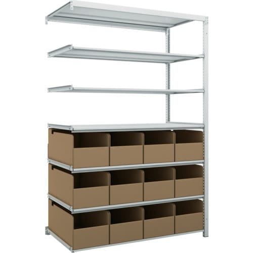 | 注意事項 | ※集中荷重になりますと耐荷重能力は半減します。必ず均等に荷重を分布させてご使用ください。連結型のみではご使用できません。最上段はビームがストッパーに干渉するためビンボックスの設置ができません。必ず2段目以降に設置ください。 |