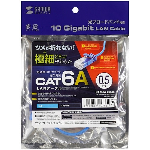 サンワサプライ SANWA カテゴリ6A極細LANケーブル KBSL6A005BL 1本 A01L-8475