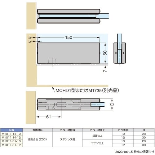 ソフトクローズする扉にする場合:フロアヒンジMCHD1型と組み合せて使用します。 |
