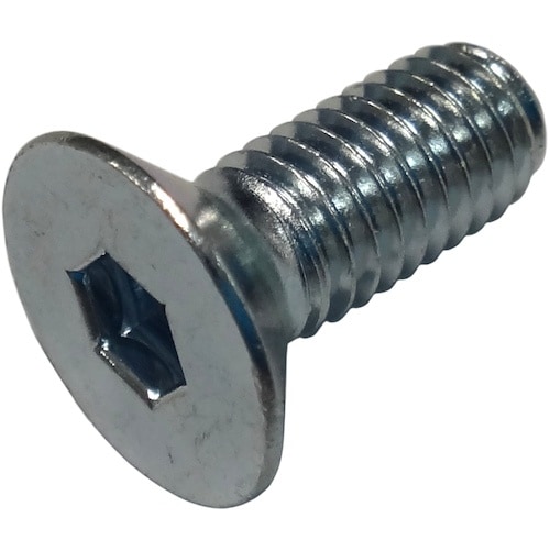 上面に六角穴があり、平らで座面が円錐形状の六角穴付きボルトです。六角レンチで締め付け、狭い場所や高い締め付け力が必要な個所に。
