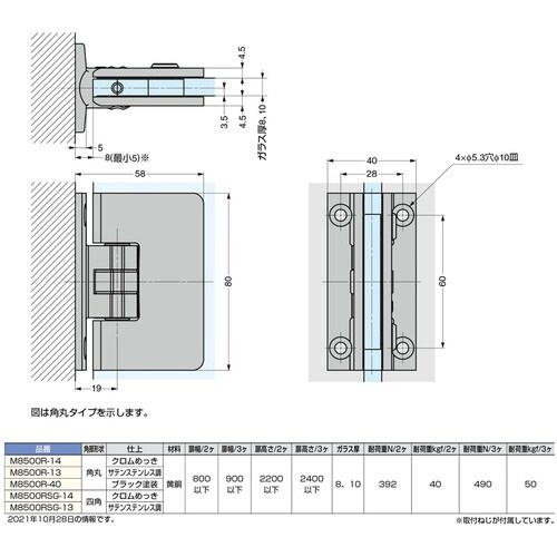 | 注意事項 | ※設置場所に合わせて別売品のガラスエッジプロテクターをご使用ください。別売品でブラック色のガラス取付ねじもご用意できます。詳細は弊社営業担当者までお問い合わせください。 |