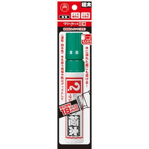 インク色:緑 | 文字サイズ:極太 | 筆記線幅(mm):10×18 | 色:緑 | その他仕様:GPNエコ商品ねっと掲載品 | その他仕様:インキ補…