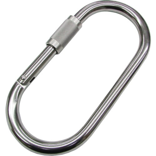 オーバル型のカラビナで、幅が広い物にも使用しやすいです。環付きは不用意にフックが開くことがなく、より安心です。チェーン・ワイヤー・ロープ等の連結金具として、また端末の金具のジョイントに。 |