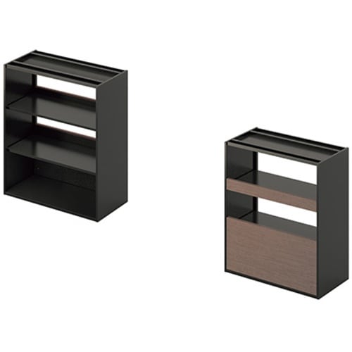 オープンスペースをゆるく間仕切る機能とデザイン性を高めた収納庫です。