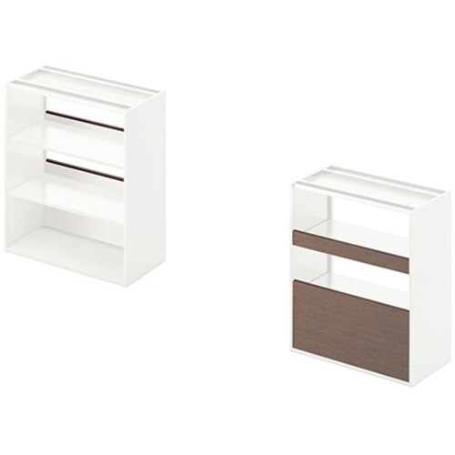 オープンスペースをゆるく間仕切る機能とデザイン性を高めた収納庫です。