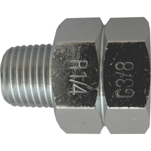 全長(mm):29.5 | タイプ:異径ニップル | ねじサイズ:R1・4オス×G3・8メス | 材質・仕上げ:真鍮 | 単位:1個