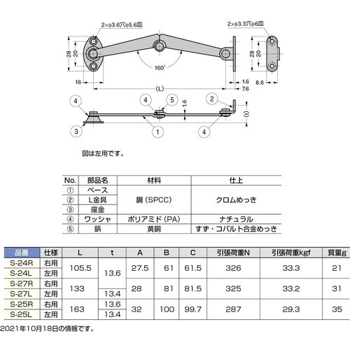 スガツネ工業 SUGATSUNE (180100145)S−24L 前蓋用ステー S24L 1本 A01M-4582