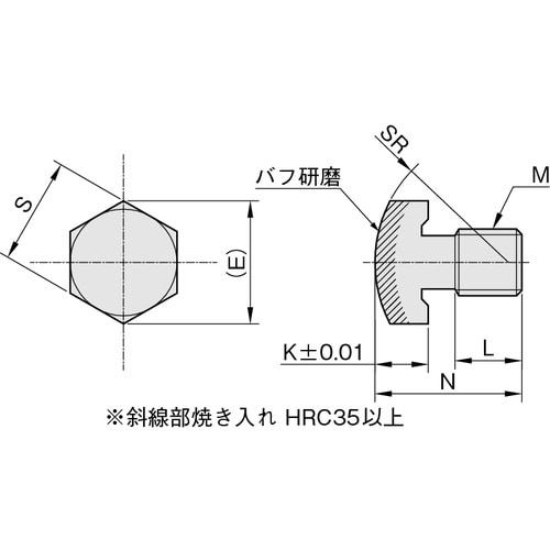 汎用性の高い並目仕様のストッパーボルトです。ボルトの頭部は衝撃に強い焼き入れ仕様(R形状)です。 |