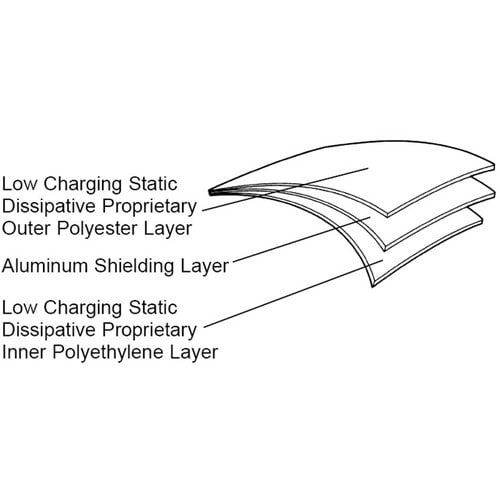 メタルインはもっとも一般的に使用されている静電気防止シールディングバッグのタイプです。40% の半透明ですので内容物を簡単に目視できます。静電気に敏感な電子部品の包装。 |