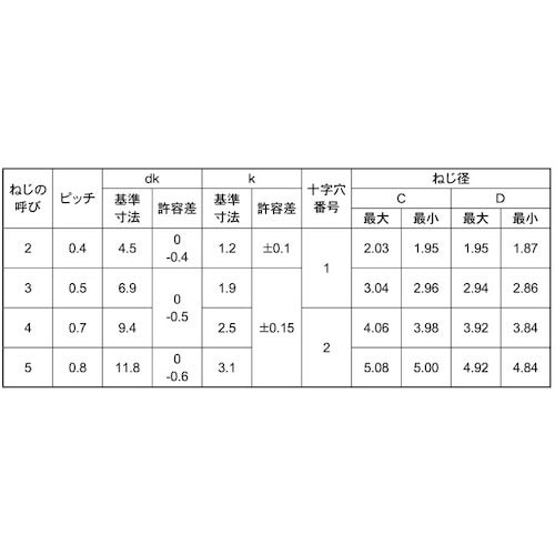 表面処理:生地(または標準) | 径×長さ:M4×20 | 材質・仕上げ:ステンレス(303、304、XM7等) | 単位:1箱(500本)