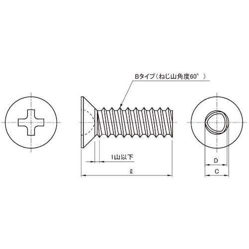 寸法(mm)d:M2 | 寸法(mm)L:4 | 表面処理:三価ブラック | 径×長さ:M2×4 | 材質・仕上げ:鉄(または標準) | 単位:1箱(…