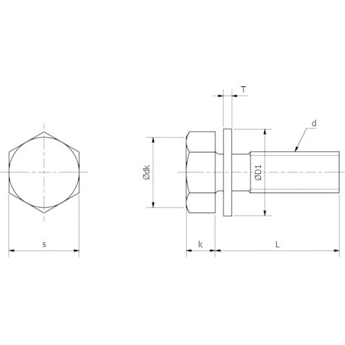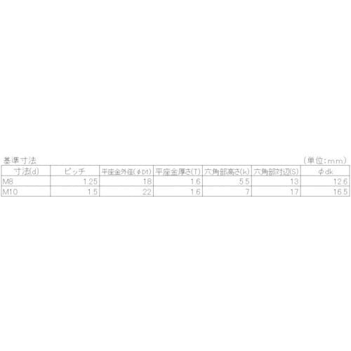 六角ボルト(全ねじ)に平座金が組込まれており、脱落しません。組込み式なので作業効率が向上します。材質は鋼で耐食性向上のため、三価クロメートめっき(薄青っぽい色)がしてあります。 |