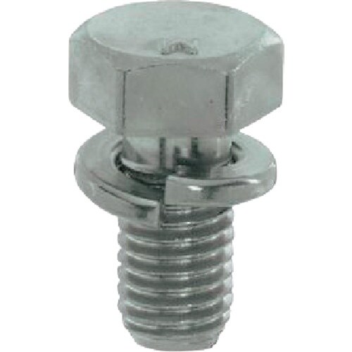 六角ボルト(全ねじ)にばね座金が組込まれており、脱落しません。組込み式なので作業効率が向上します。材質は鋼で耐食性向上のため、三価クロメートめっき(薄青っぽい色)がしてあります。 |