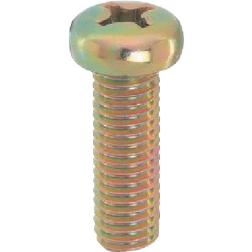 十字穴付きのなべ頭小ねじです。頭部が出ても差し支えない所に使われます。材質は鋼で耐食性向上のため、クロメートめっき(黄色っぽい色合い)がしてあります。生地に比べ耐食性があります。 |