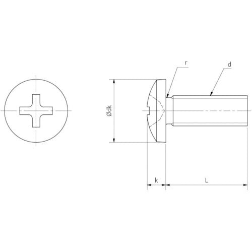 十字穴付きのバインド頭小ねじです。頭部が出ても差し支えない所に使われます。座面が大きいので、座面陥没を防止する効果があります。ボルトに比べ小さな部材の一般的な締結に。 |