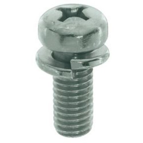 十字穴付なべ小ねじにばね座金が組込まれており、脱落しません。組込み式なので作業効率が向上します。材質は鋼で耐食性向上のため、三価クロメートめっき(薄青っぽい色)がしてあります。 |