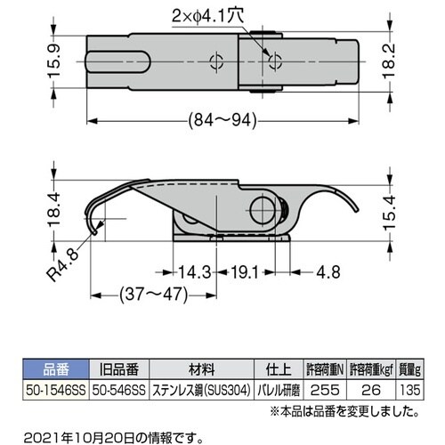 スガツネ工業 SUGATSUNE (120020516)50−1546SSステンレス鋼製ファスナー 501546SS 1個 A01R-5528