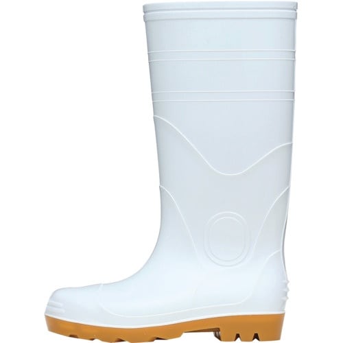 防水性や耐油性に優れ、アルカリ成分にも強いPVC素材の一体成型で作られた、スチール先芯入りセーフティ長靴です。 |