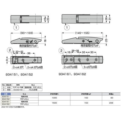 許容荷重(kgf):102 | 高さ(mm):18 | 仕上:サテン仕上(本体)、バレル研磨(受座) | その他仕様:掛代調節機能付 | 材質・仕上げ…