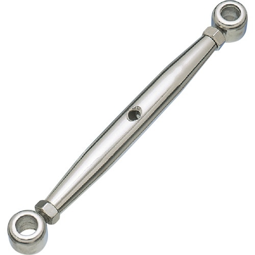 枠を回転させると、ゆるめたり、締めたりすることができます。枠式とは違い、パイプタイプでネジ部分が露出していないので、より装飾的です。ワイヤロープの張り具合の調節に。
