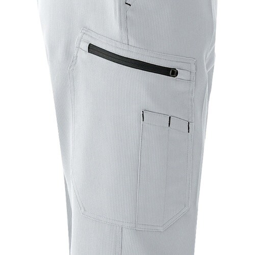 軽量ストレッチ生地を使用しています。シルバーグレーのみ透け防止用裏地付きです。製造工場・倉庫・配送・ビルメンテナンス業などに。