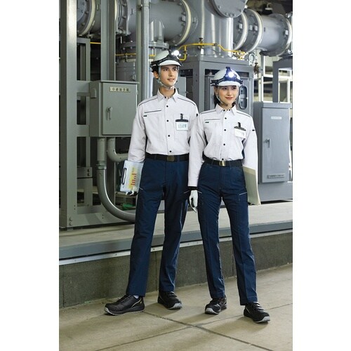 アイトス 長袖シャツ(男女兼用)AZ3535 シルバーグレー×ネイビー S AZ3535003S 1着