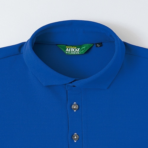 PBT繊維を使用したストレッチ性に優れた生地を使用しています。エコマーク、グリーン購入法対応のエコ素材採用し、ストレッチ、UV、遮熱、抗菌防臭加工など多機能を装備したポロシャツです。 |